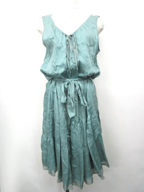 テンダンス パーレイビームス tendance par Ray BEAMS ワンピース ギャザー リボン ベルト ノースリーブ 青系 0610 レディース 【中古】【ベクトル 古着】 180610 ブランド古着ベクトルプレミアム店
