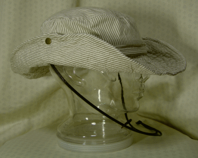 ツバには約0.8cmの巾でステッチが入りワイヤー入りのふちどりがツバの形を自由自在、 共生地のベルトとハト目の金具がデザインアクセント! <ご案内とお願い> ☆