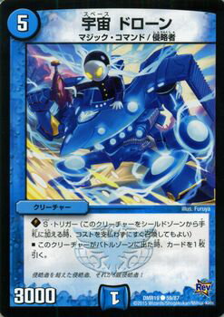 デュエルマスターズ カード 革命編 第3章 禁断のドキンダムX(DMR19)収録 デュエルマスターズ カード 宇宙 ドローン ■レアリティ:コモン ■種類:クリーチャー ■文明:水文明 ■種族:マジック・コマンド/侵略者 ■パワー:3000 ■コスト:5 [特殊能力] ■S・トリガー ■このクリーチャーがバトルゾーンに出た時、カードを1枚引く。