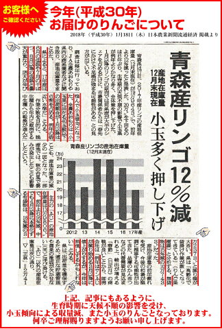 その他注意事項等 ●商品ページ内にも記載の通り今年(平成29年度産)お届けのりんごサイズにつきまして、 天候不順の影響を受け小玉傾向となっております。