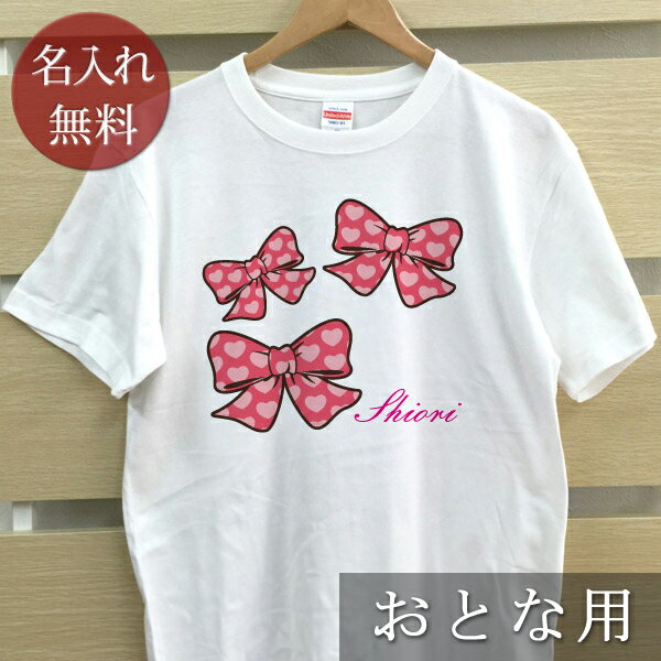 大人用 Tシャツ 誕生日 プレゼント 名入れ 名前入り ポップデザイン ハートりぼん 半袖 誕生日プレゼント ママへ パパへ 母の日 父の日 妻へ 夫へ メンズ レディース 大きいサイズ 親子 家族 お揃い クリスマス 【1枚のみメール便対応】 ココロコ