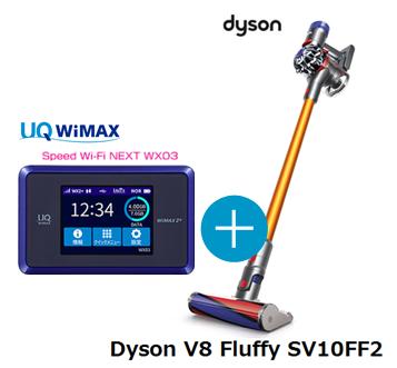 UQ WiMAX 正規代理店 3年契約UQ Flat ツープラスまとめてプラン1670Dyson V8 Fluffy SV10FF2 + WIMAX2+ Speed Wi-Fi NEXT WX03 ダイソン ハンディ スティック コードレス掃除機 家電 セット ワイマックス 新品【回線セット販売】
