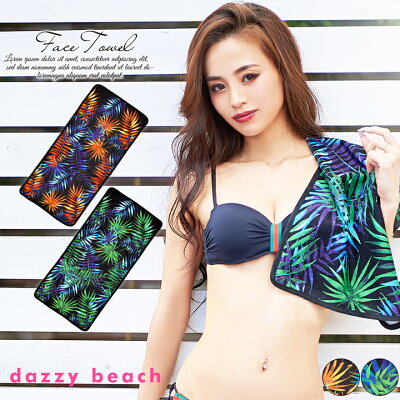 フェイスタオル おしゃれ リーフ柄 フェイス タオル [dazzy beach]| ビーチタオル かわいい ブランケット レディース ビーチグッズ 海 プール スポーツタオル リゾート 2020 水着 新作 大人 女性