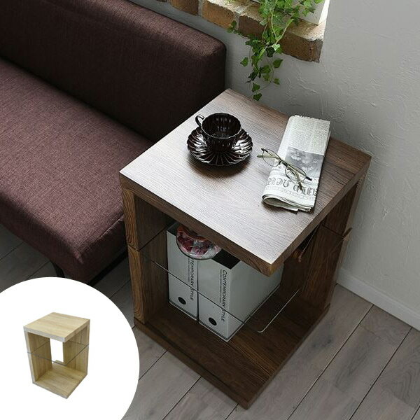 サイドテーブル ガラス棚 古材風 ヴィンテージ調 SAND 約幅40cm ( 送料無料 テーブル 机 おしゃれ リビング コンパクト 木製 ベッドサイド 一人暮らし 収納 棚 シャビーウッド 木目 ソファサイド )