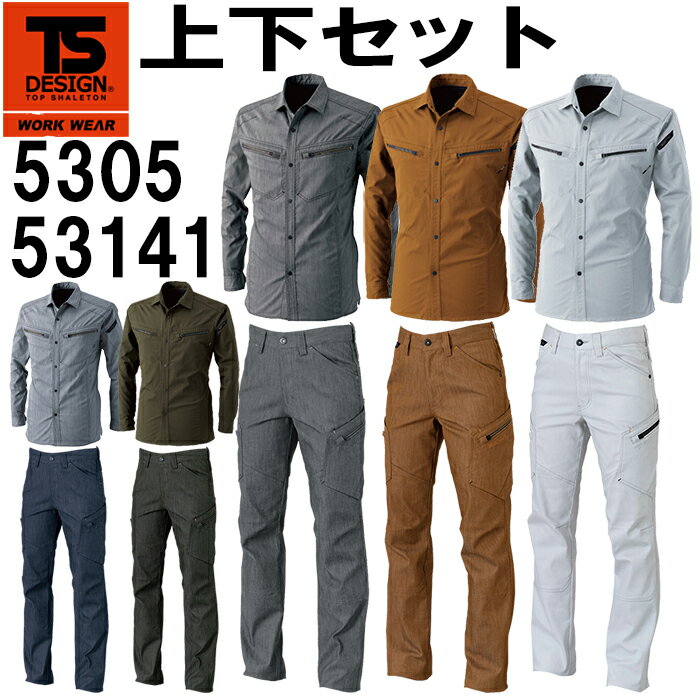 上下セット TS DESIGN(藤和) ロングスリーブシャツ 5305 (M〜LL)&レディースカーゴパンツ 53141 (S〜LL) セット (上下同色) 秋冬用作業服 作業着 ズボン 取寄